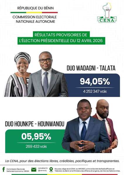 Scrutin présidentiel du 12 avril 2026 : Un raz-de-marée électoral en faveur du duo Wadagni–Talata