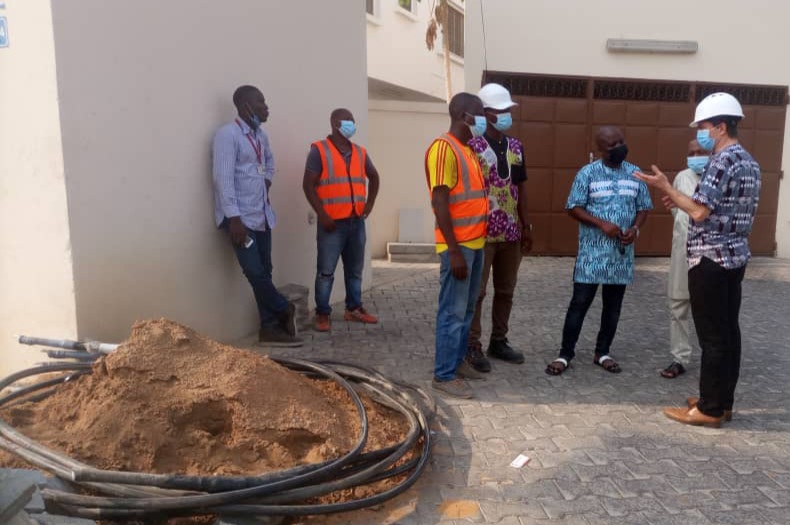 Pour constater l'évolution des travaux, Gérard ZAGRODNIK a effectué le dimanche 13 février 2022 une descente sur le chantier de réalimentation. Après avoir salué cette descente du Directeur Général, le Directeur Régional littoral 1 de la SBEE, Roger GBÈGAN rassure la clientèle de cette zone que les équipes techniques sont à pieds d'œuvre pour le rétablissement total de l'énergie électrique.