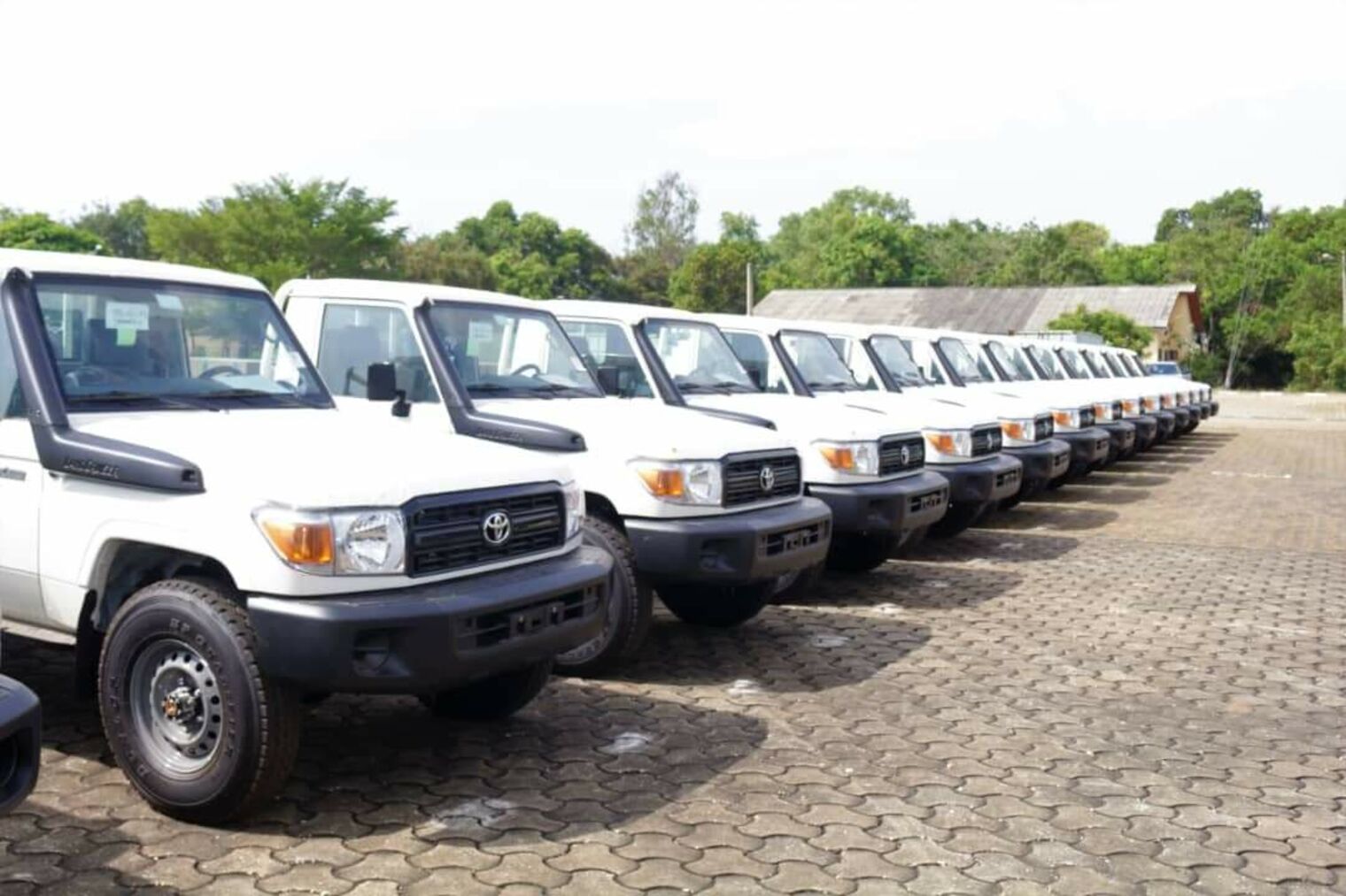 Pour mieux adapter les moyens roulants aux nouvelles menaces, le Gouvernement a décidé de doter la Police de moyens spécifiques et conformes aux exigences du terrain. C'est à ce titre que, ce mardi 06 décembre 2022 à l'Etat Major Général des Armées à Cotonou, le Ministre de l'Interieur et de la Sécurité Publique Monsieur Alassane SEÏDOU a procédé, en présence du Ministre délégué auprès du Président de la République, chargé de la Défense Nationale Monsieur Fortunet Alain NOUATIN, à la remise officielle de quarante (40) véhicules pick-up Land Cruiser au Directeur Général de la Police Républicaine Soumaïla YAYA. L'objectif est de soutenir les nombreux efforts consentis par les unités dans l'accomplissement de leurs missions quotidiennes.