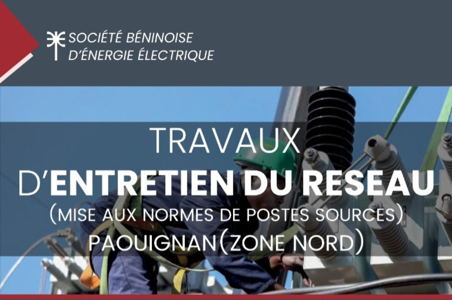 La Société Béninoise d'Énergie Électrique (SBEE) informe son aimable clientèle du département des Collines qu'elle entreprend des travaux d'entretien du réseau dans toutes les Collines le dimanche 15 janvier 2023 de 07 heures à 11 heures. Ces travaux concernent notamment la mise aux normes des postes sources.