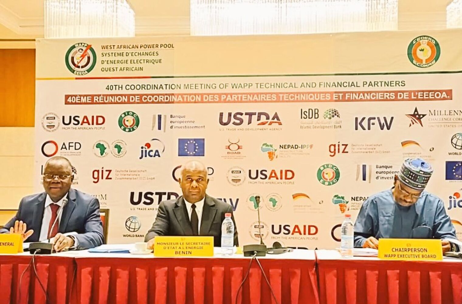 Cotonou, la capitale économique du Bénin a abrité ce vendredi 23 juin 2023 la « 40ème Réunion de Coordination des Partenaires Techniques et Financiers du Système d'Échanges d'Énergie Électrique Ouest-Africain (EEEOA) ». Et c'est le Secrétaire d'État à l'Énergie du Bénin, Monsieur Édouard DAHOME qui a lancé officiellement les travaux en présence du Secrétaire Général du WAPP / EEEOA, Monsieur Siengui A. KI, du Président du Conseil Exécutif du WAPP, Eng Sule Ahmed ABDULAZIZ, des Partenaires Techniques et Financiers du WAPP, et des membres de l'instance de décisions du Conseil Exécutif du WAPP.