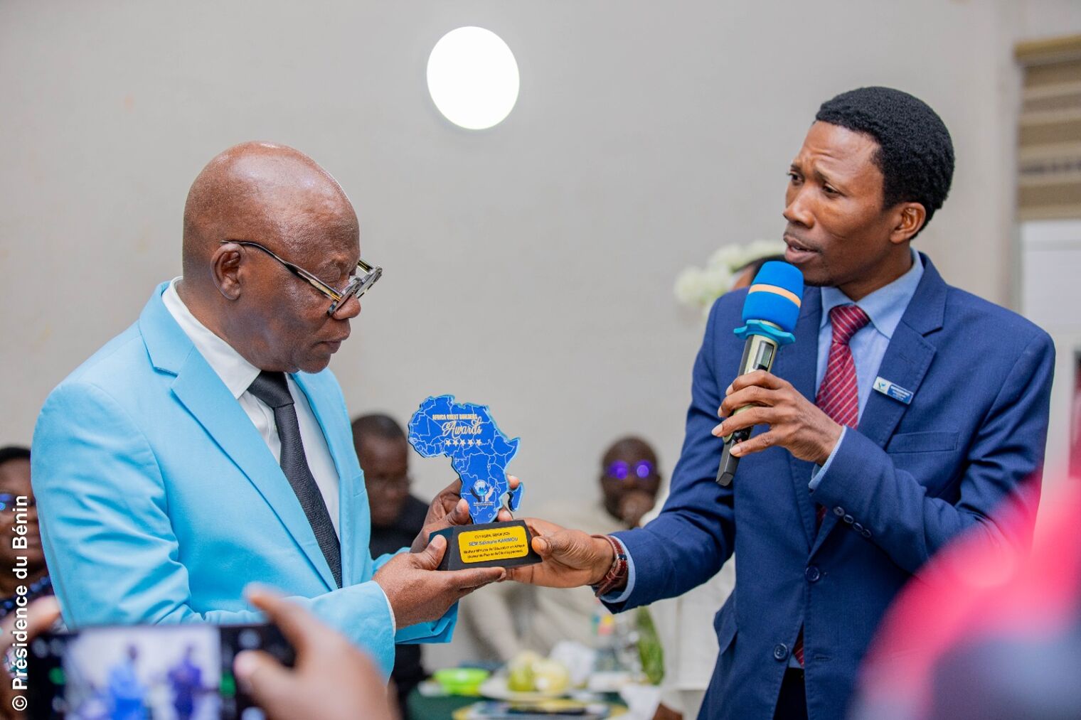 Au cours de la cérémonie, le Ministre KARIMOU a été honoré pour la deuxième fois par l’Ordre Mondial des Grands Bâtisseurs (OMGB), qui lui a décerné le Certificat de Mérite des Grands Bâtisseurs et le trophée Africa Great Builders Awards pour la qualité de son management à la tête du MEMP. Déjà lauréat d’une première distinction en 2021, le Ministre voit ainsi son action de nouveau saluée à l’échelle africaine.