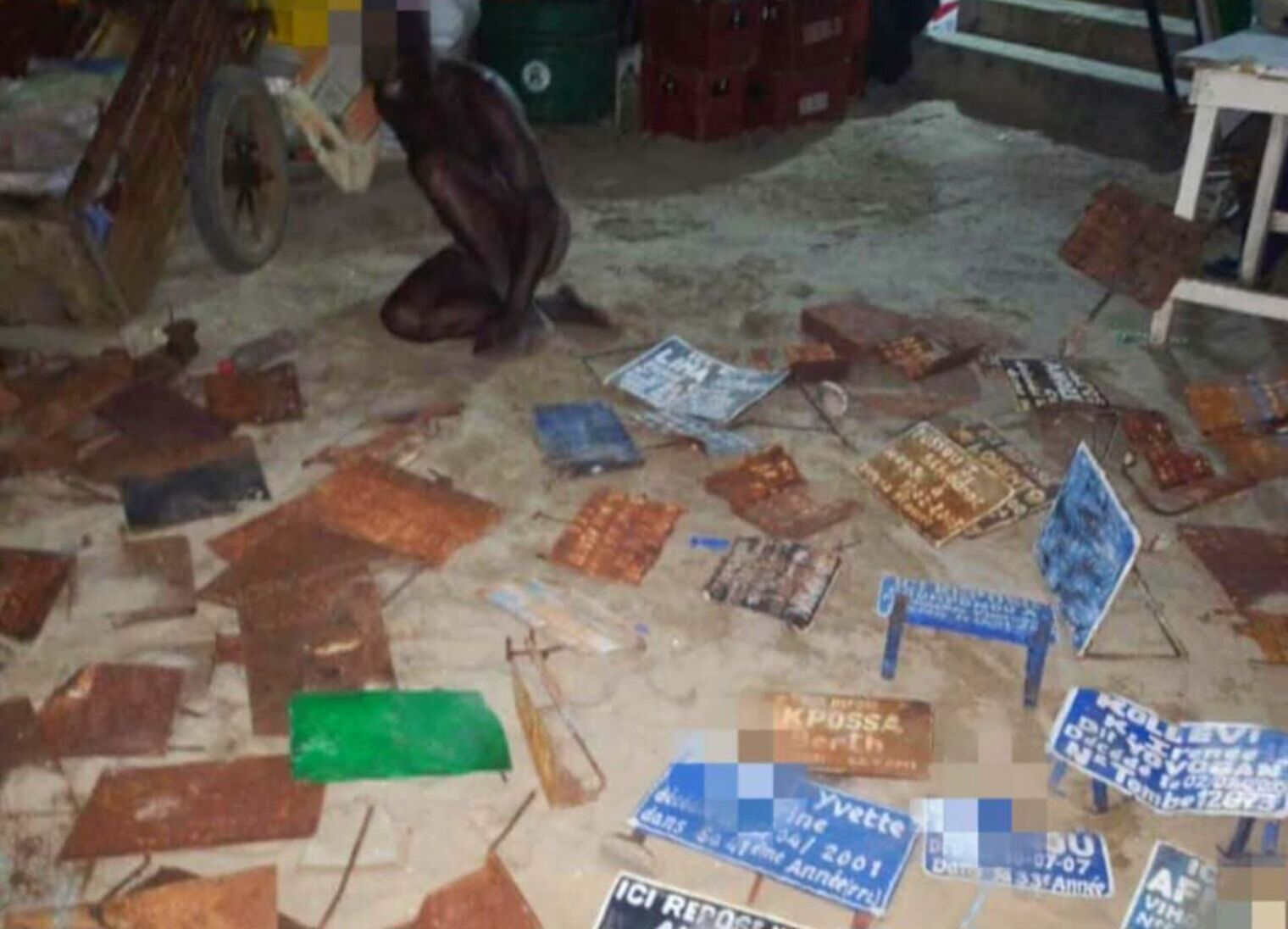 Le premier coup de filet s’est opéré dans des circonstances particulièrement révoltantes. Alertés par des riverains, les policiers ont intercepté un homme circulant en pousse-pousse, transportant un chargement macabre : plus d’une centaine de plaques funéraires, récemment dérobées au cimetière de PK 14. Ce forfait de profanation des sépultures a conduit à la mise en garde à vue immédiate du suspect, suscitant l’indignation.