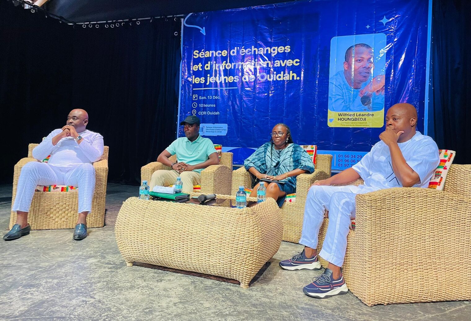 À Ouidah, au Centre Culturel et de Rencontres Internationales (CCRI) John Smith, le Porte-parole du Gouvernement, Monsieur Wilfried Léandre Houngbédji, a échangé le samedi 13 décembre 2025 avec la jeunesse communale. Cette rencontre s’est tenue dans une atmosphère à la fois conviviale et studieuse, en présence de plusieurs autorités locales, notamment l’Honorable Maixent DJEIGO, Landry HINNOU, Coordonnateur des Services de l’État, et Sabine FOURN, deuxième adjointe au maire.