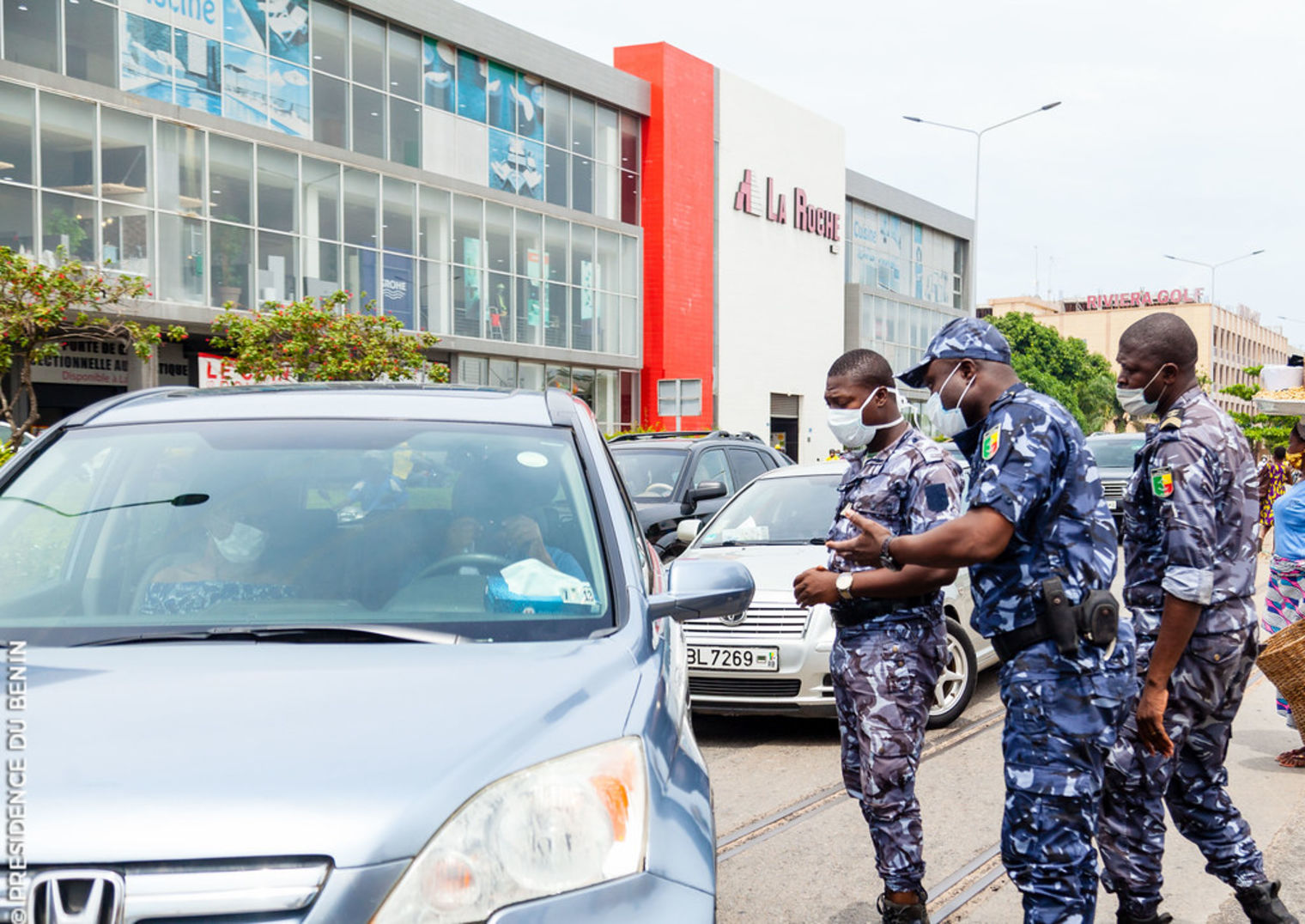 La Police Républicaine s'implique davantage dans la riposte contre le coronavirus au Bénin. Ces forces de sécurité représentées par la Police Républicaine intensifient la sensibilisation et les contrôles sur le terrain. Chargée de veiller au respect des mesures officielles édictées par le gouvernement, la Police Républicaine, intensifie depuis le début de ce mois de juillet 2020 des contrôles sur le terrain. Ils contrôlent rigoureusement le Port de masque obligatoire en tous lieux, le respect des effectifs autorisés à bord des véhicules et bus de transport en commun, le respect du nombre de passagers sur une moto, le respect des mesures officielles dans les bars, marchés, lieux de culte... etc. A ces mesures, il faut ajouter l'Interdiction d’ouverture des discothèques, l'interdiction d’accès sur les plages.